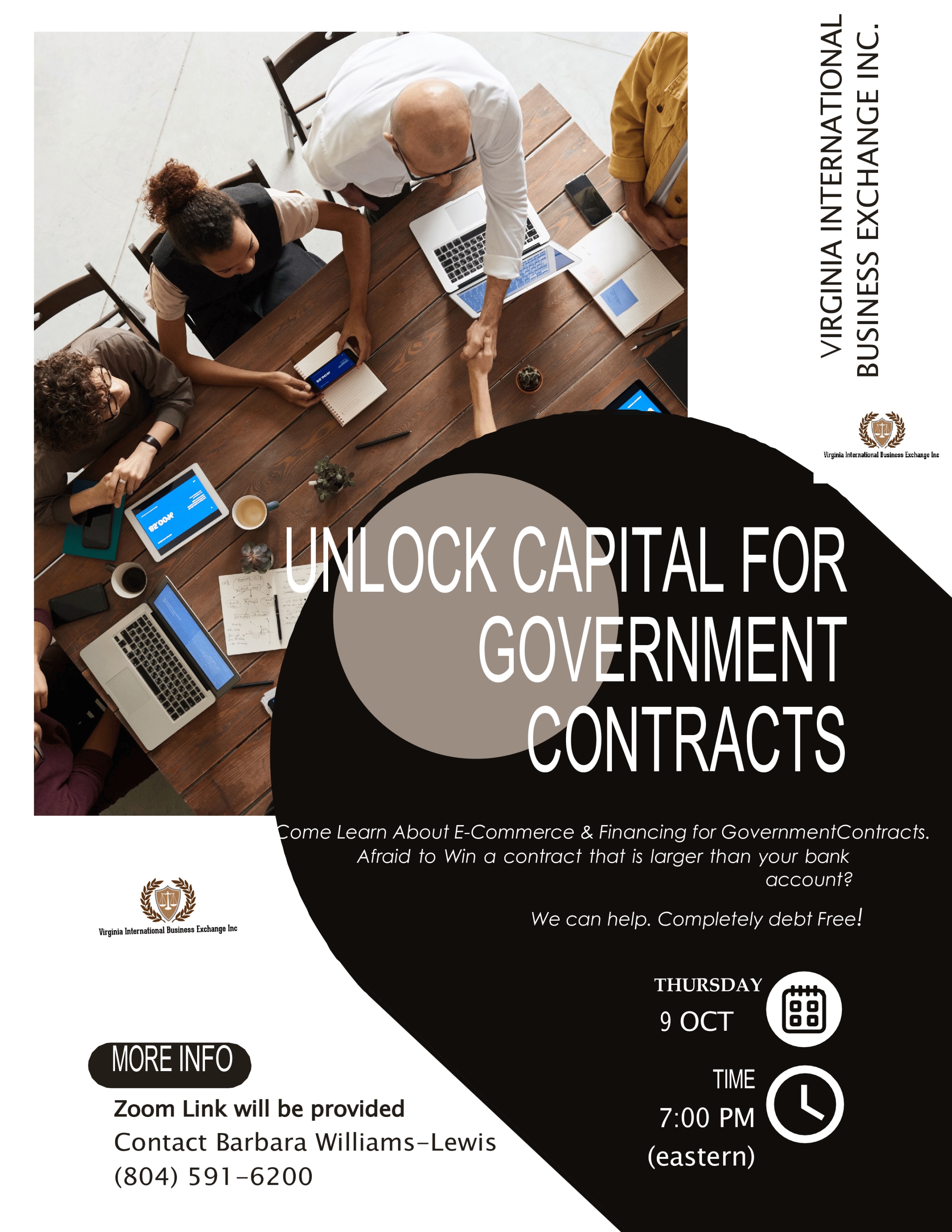 If you are interested in learning about government contracting financing & E-Commerce, you would want to attend this meeting. If you are serious about government contracting and want to learn about E-Commerce platform, please plan on attending.