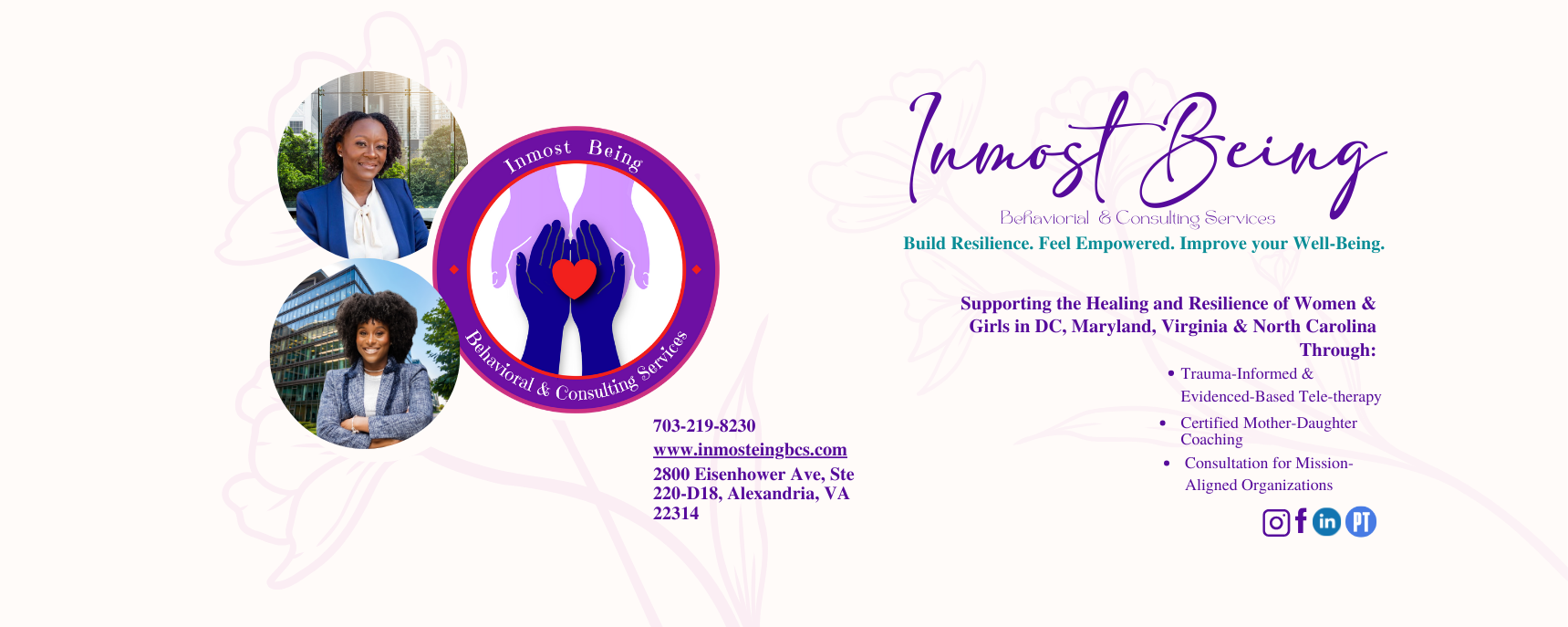 The vision for Inmost Being Behavioral & Consulting Services was born out of a long-held dream to fill the gaps in mental health care for underserved communities of women and girls. Jessica and Tasha-Mae both bring years of experience as seasoned clinicians, and they understood the need for tailored, creative approaches to mental health.